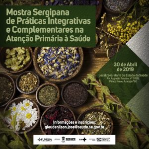 Dessa forma, seguindo as orientações da Coordenação Nacional, vimos informar da realização da “Mostra Sergipana de Práticas Integrativas e Complementares na Atenção Primária à Saúde”, a realizar-se no dia 30 de abril do ano em curso. A referida Mostra tem como finalidade dar ênfase à importância das práticas integrativas e complementares para o cuidado em saúde e para a promoção da saúde, pois mesmo com todo avanço da PNPIC na última década, continua sendo condição fundamental para sua efetiva implantação, estimular, nos territórios, espaços de fortalecimento do debate sobre as práticas e trocar experiências com gestores de outros municípios/estados que tenham as PICS ofertadas pelo SUS.