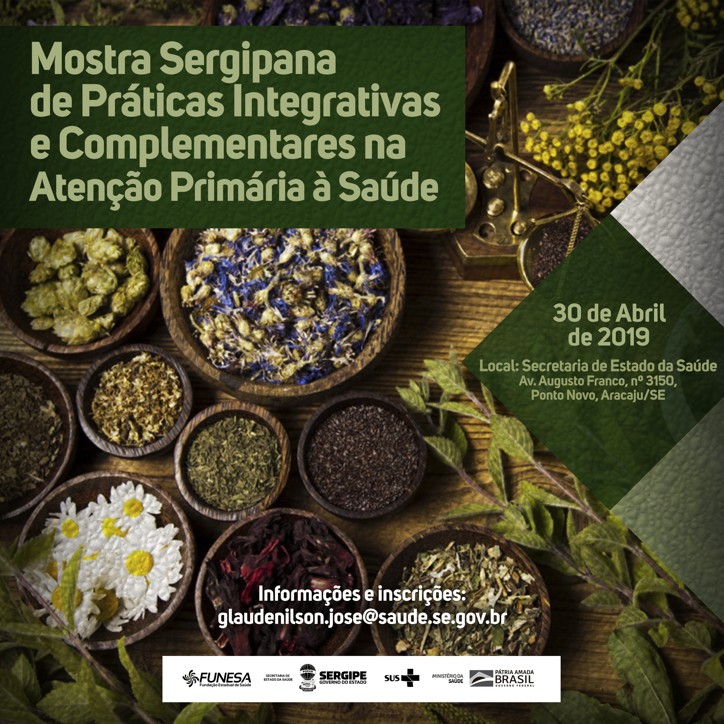 Inscrições e informações através do e-mail glaudenilson.jose@saude.se.gov.br