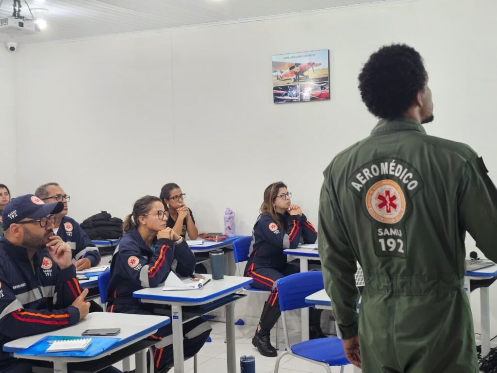 Com foco em enfermeiros e médicos do transporte aeromédico do Serviço de Atendimento Móvel de Urgência (Samu 192 Sergipe), a capacitação une conteúdos teóricos e práticos voltados à segurança de voo, logística de resgate e atendimento clínico em aeronaves, fortalecendo a integração entre as equipes de saúde e o Grupamento Tático Aéreo (GTA).